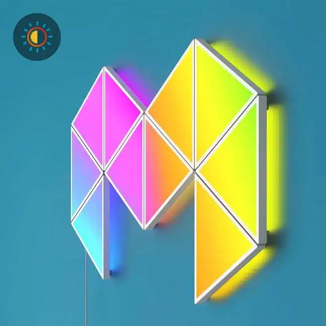 Sukurkite individualų šviesos dizainą. „Glide Tri-angle“ – tai iš kelių trikampių modulių sudaroma sieninė RGBIC apšvietimo sistema. Kiekviena plokštė palaiko segmentinį spalvų valdymą, todėl vienu metu matysite kelias spalvas ir sklandžius gradientus. Valdymas per Govee Home programėlę (Wi-Fi 2.4 GHz + Bluetooth) ir balsu su Amazon Alexa bei Google Assistant.