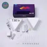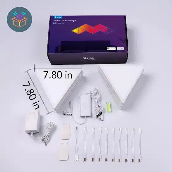 • Komplektacija: trikampės LED plokštės, kampinės ir tiesios jungtys, valdiklis su mikrofonu, maitinimo blokas, lipnūs tvirtinimo elementai (plokščių skaičius priklauso nuo rinkinio – dažniausiai 10 vnt.; patikslinkite jūsų SKU puslapyje).