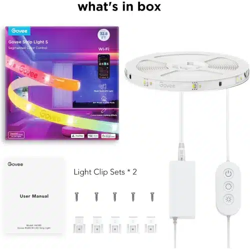 Išmanus apšvietimas, keičiantis namų atmosferą. 5 metrų ilgio RGBIC LED juosta leidžia kurti sklandžius spalvų perėjimus ir dinamiškus daugiapalvius efektus. Valdykite per Govee Home programėlę (Wi-Fi 2.4 GHz + Bluetooth), o taip pat balsu su Amazon Alexa ir Google Assistant. Matter palaikymas suteikia paprastą integraciją su įvairiomis išmanių namų ekosistemomis.