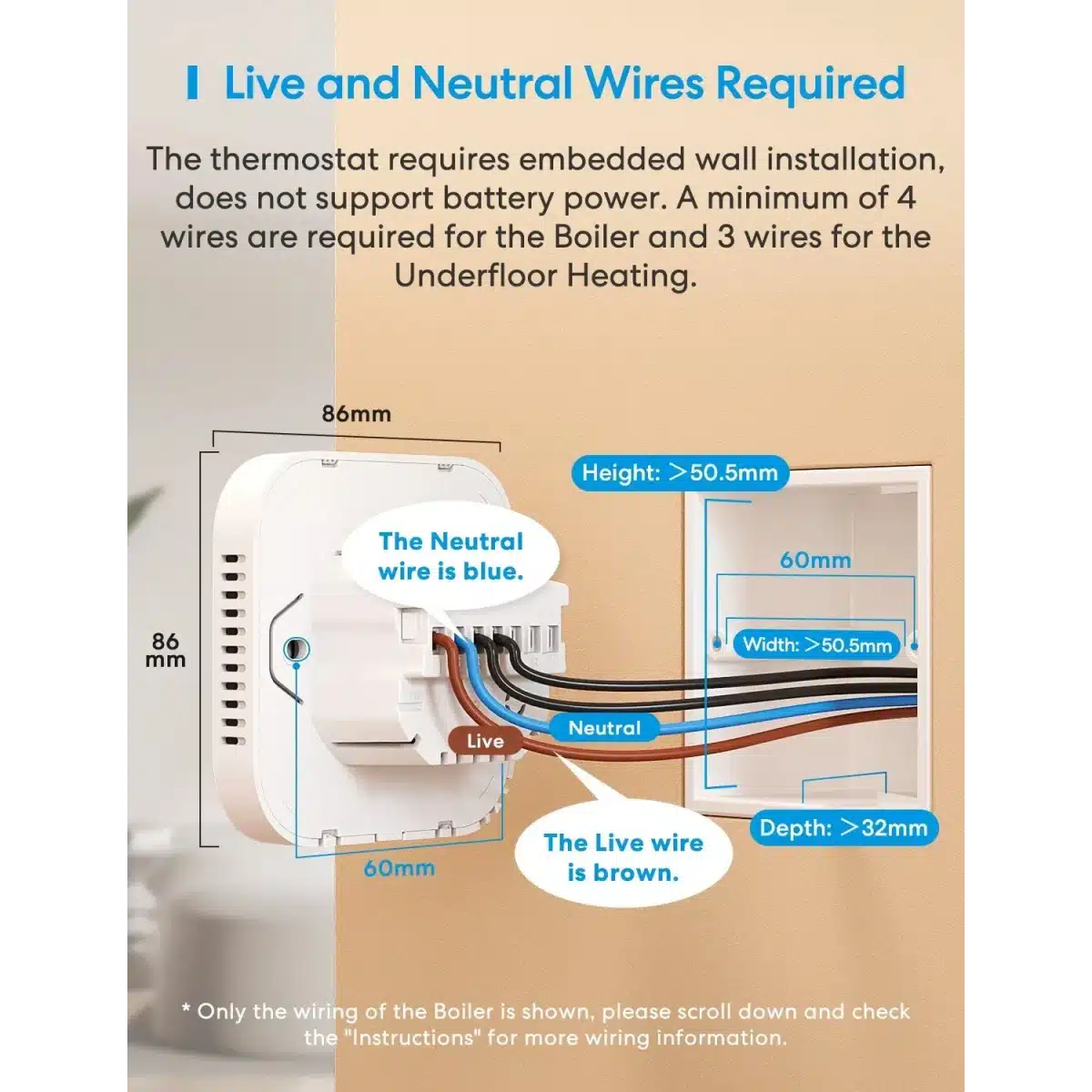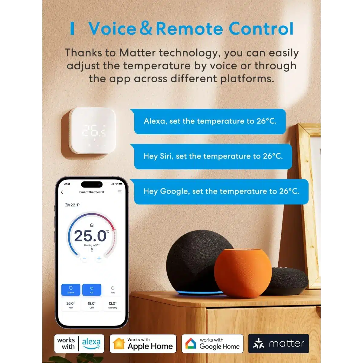 Meross MTS215 Wifi termostatas Katilo / vandens šildymo sistemai Apple Homekit, Matter juodas