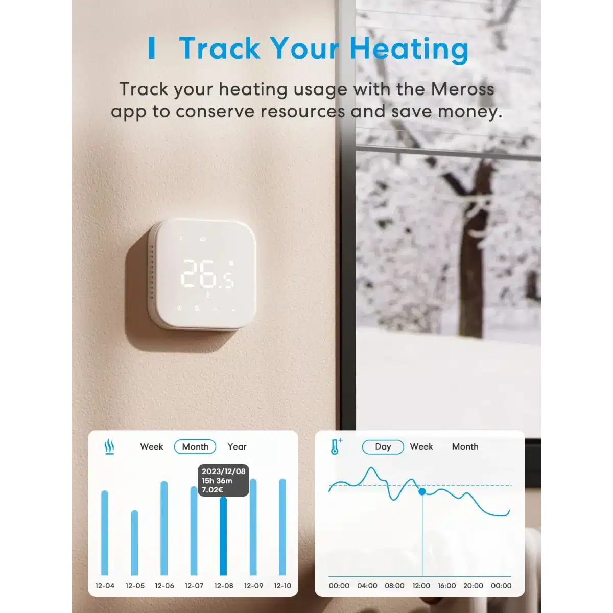 Modernizuokite hidraulinį šildymą su stikliniu, į sieną montuojamu termostatu, kuris derina elegantišką dizainą ir išmanią automatiką. Meross MTS215BMA suteikia Matter daugiaplatformį valdymą, tikslius grafikus ir energijos naudojimo įžvalgas daugumai katilų bei vandens grindinio šildymo (UFH) sistemų – didesniam komfortui ir mažesnėms sąskaitoms.