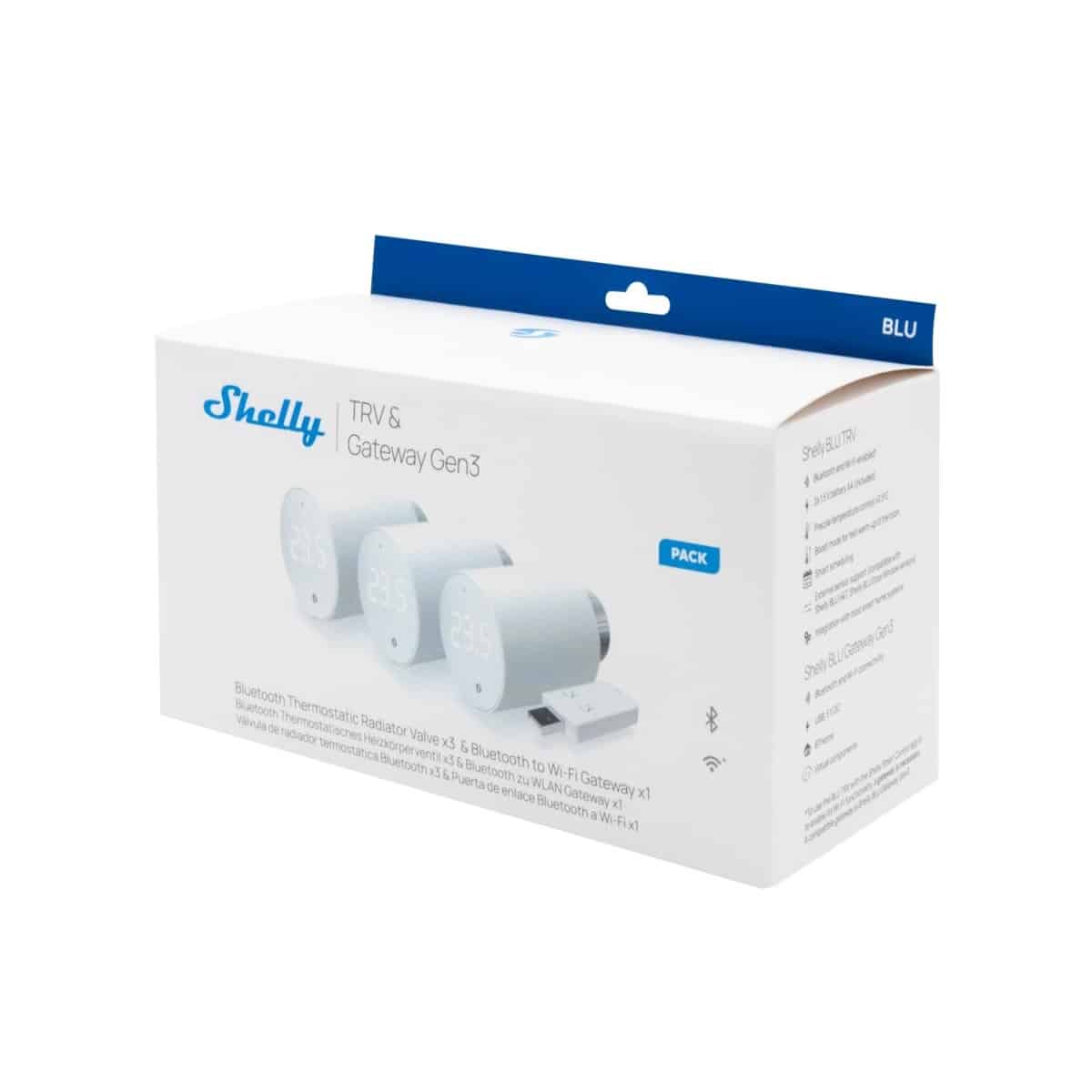 Shelly BLU TRV yra išmani termostatinė radiatoriaus galvutė su Bluetooth ryšiu. Jis reguliuoja kambario temperatūrą keisdamas karšto vandens srautą per radiatorių. Esant poreikiui, temperatūrą galima bet kada pakeisti sukant prietaiso rotacinį kodavimo įrenginį į kairę arba dešinę arba per savo mobilųjį telefoną, planšetinį kompiuterį ar kompiuterį. Prietaisas taip pat gali palaikyti kambario temperatūrą pagal nustatytą savaitės grafiką. Jis maitinamas 2 AA, 1,5 V baterijomis.