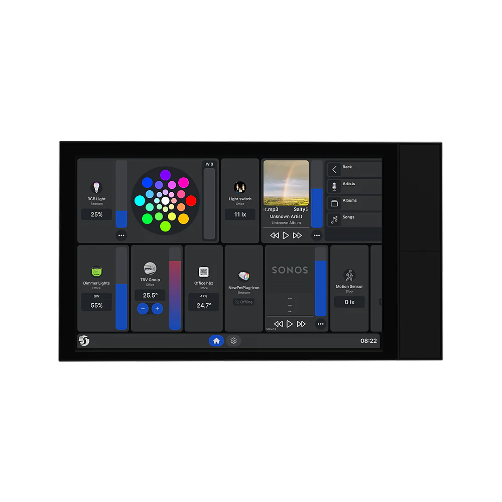 Susipažinkite su „Shelly Wall Display XL“ – aukščiausios kokybės 10,1 colio sieniniu valdikliu, kuris viename elegantiškame ekrane sujungia apšvietimo, ŠVOK, scenų, garso ir vartojimo apžvalgą. Jis montuojamas į standartinę ES sieninę dėžutę ir apjungia greitą keturių branduolių platformą, įmontuotą 5 A relę ir keturis veiksmų mygtukus, kad būtų galima patogiai valdyti butus, namus, viešbučius ar komercines patalpas be programėlių.