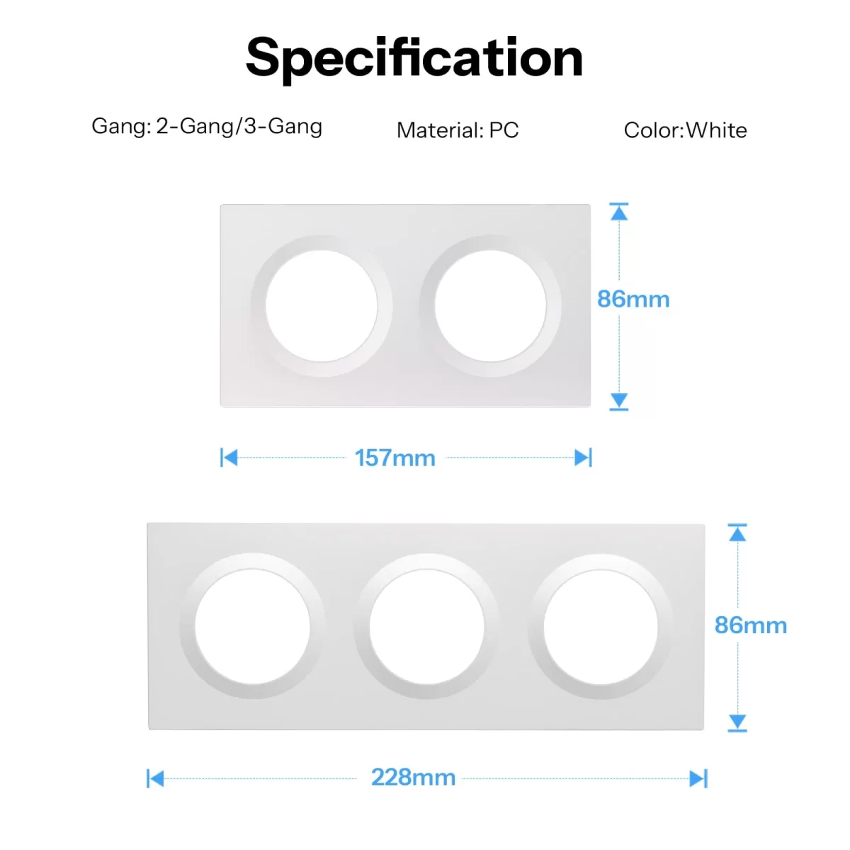 Dvigubas rėmelis „SONOFF EFG“ – tai elegantiškas ir funkcionalus sprendimas, specialiai sukurtas „Sonoff ERBS“, „E1GS“ ir „E1GSL“ išmaniesiems jungikliams. Priklausomai nuo modelio, šis rėmelis leidžia estetiškai ir praktiškai išdėstyti du ar tris jungiklius greta, sklandžiai įsiliedamas į bet kokį interjerą – modernų namus, biurą ar komercinę aplinką. Pagamintas iš aukščiausios kokybės matinės baltos spalvos plastiko, rėmelis išsiskiria minimalistiniu dizainu ir patvarumu. Galima įsigyti įvairių dydžių ir suderinamas su standartinėmis europietiškomis 55 mm sieninėmis dėžutėmis, todėl jį galima lengvai integruoti į esamas sistemas. Tai idealus pasirinkimas tiems, kurie siekia sukurti švarią ir vieningą išmaniųjų namų sistemą.