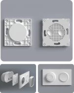 - Matmenys: suderinamas su standartinėmis 86 mm sieninėmis dėžutėmis, priekinio skydelio storis tik 21 mm.
