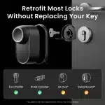 SwitchBot Lock Ultra – tai ant esamos durų spynos montuojamas išmanus užraktas, veikiantis be gręžimo ar cilindro keitimo. Valdykite duris telefonu ar laikrodžiu, palikdami galią ir mechaninį raktą kaip atsarginį. Palaikomos automatinės užrakinimo taisyklės, laikini skaitmeniniai raktai svečiams ir įvykių žurnalas. Su papildomu SwitchBot Hub gausite nuotolinį valdymą per internetą, balso asistentus ir integracijas (Matter/Apple Home/Google/Alexa, priklausomai nuo hub’o).