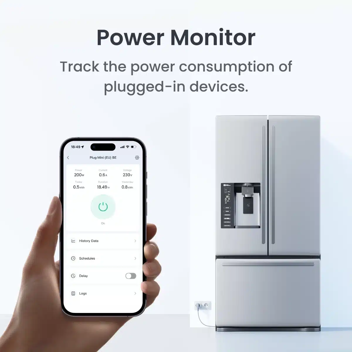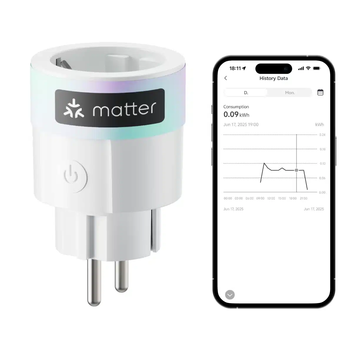 Kompaktiškas išmanus lizdas, skirtas EU/Schuko standartui. Valdykite prijungtus prietaisus telefonu ar balsu, stebėkite momentinę galią ir suvartotą energiją (kWh), kurkite tvarkaraščius ir automatizacijas. Puikiai tinka šviestuvams, šildytuvams, drėkintuvams, routeriams ir kitai buitinei technikai.