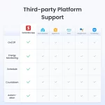 Funkcijos: energijos matavimas (W/kWh), grafikai, tvarkaraščiai, laikmačiai, „Power-on state“ po elektros dingimo, naktinis LED režimas