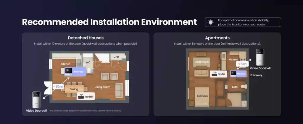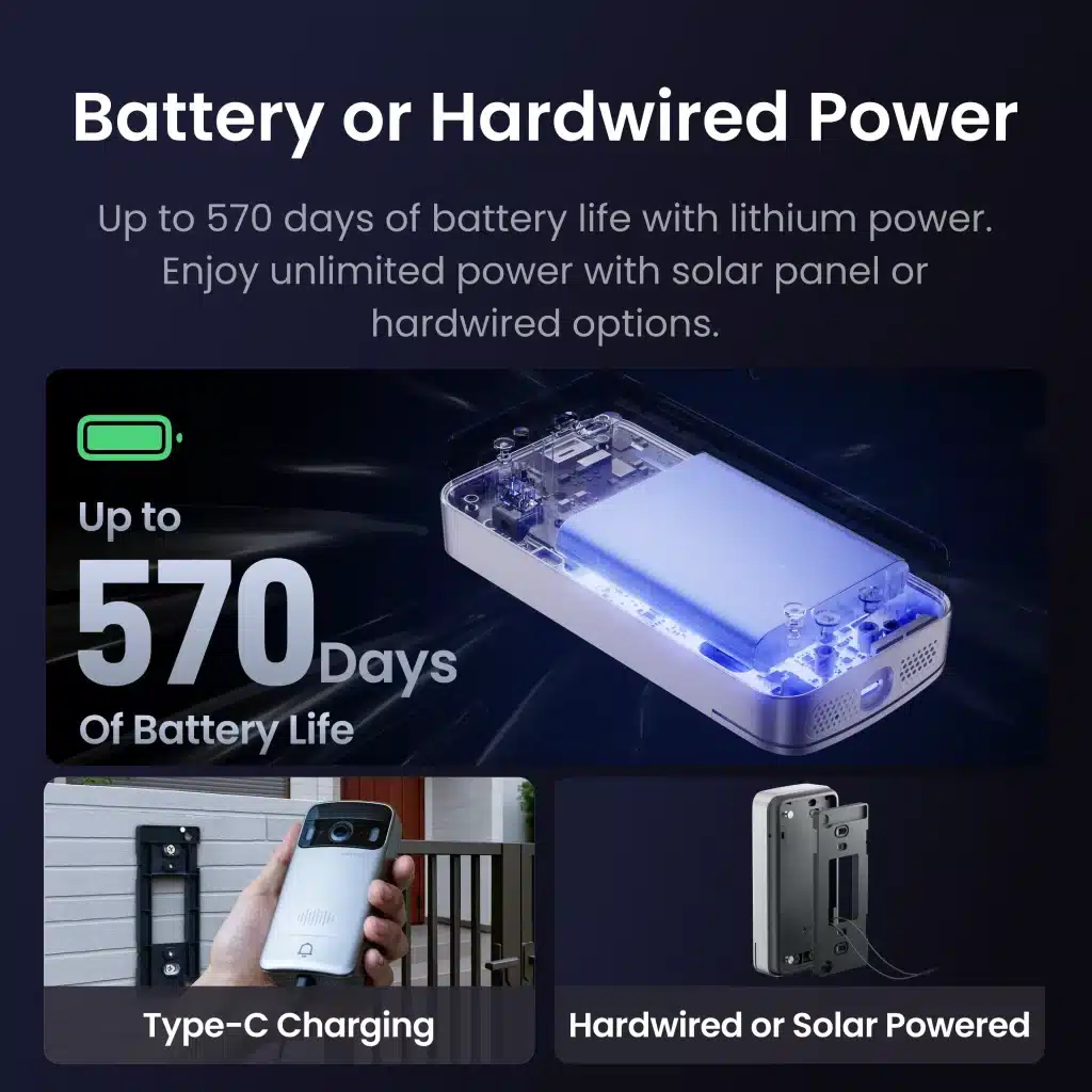 Išmanus vaizdo durų skambutis su 2K (2304×1296) raiška, 165° plačiakampiu objektyvu ir spalvotu naktiniu matymu (IR 940 nm + balta šviesa). Komplekte esantis 4,3″ vidaus monitorius veikia kaip ekranas, skambutis (iki ~100 dB) ir SwitchBot įrenginių valdiklis – galima net užrakinti/atrakinti duris, jei turite „SwitchBot Lock“. Karti galima belaidžiu (5000 mAh) režimu arba maitinti laidu (USB-C), įrašai – į microSD (iki 512 GB) ar debesį. IP65 atsparumas lauko sąlygoms.